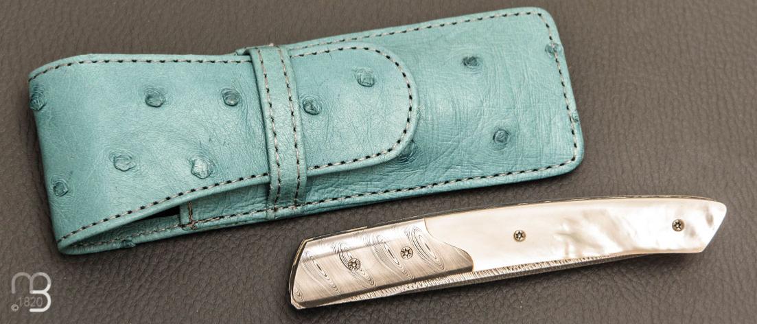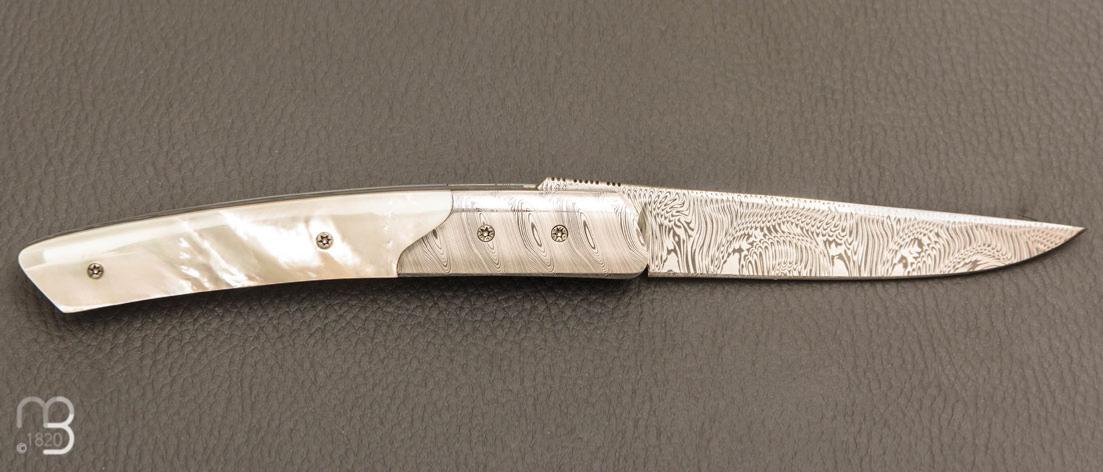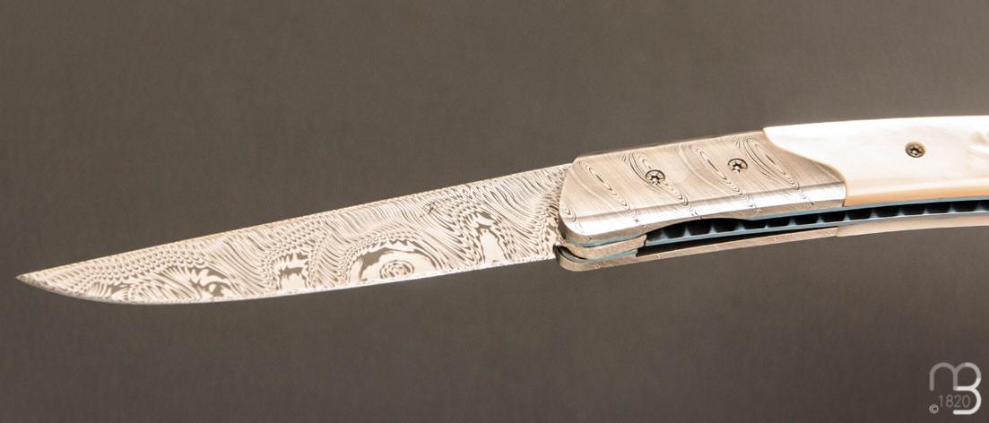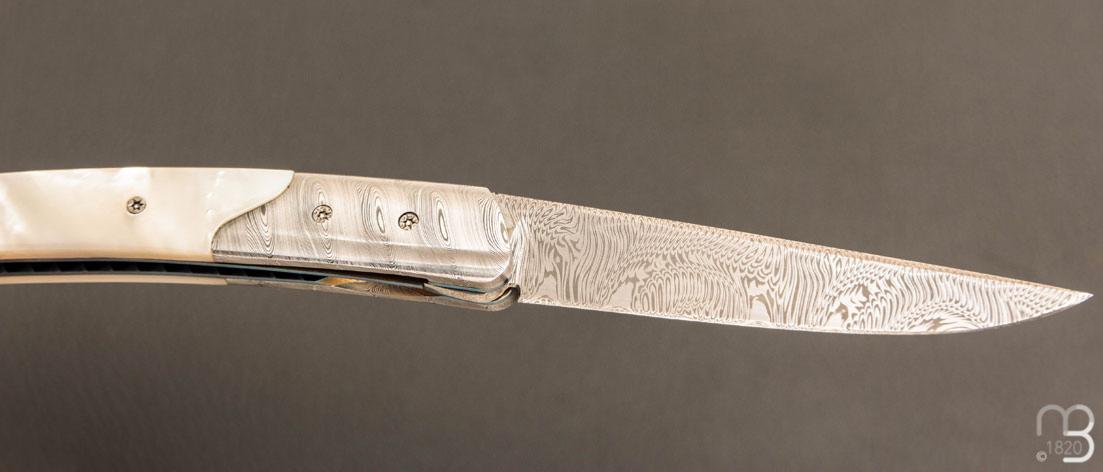•   Couteau " Pièce unique " custom par Des Horn - Nacre et Damas