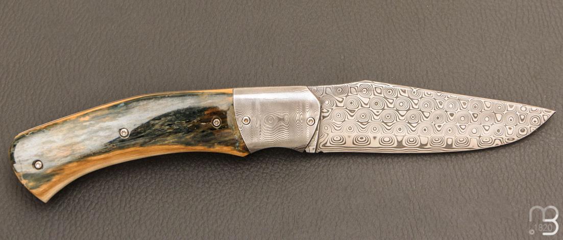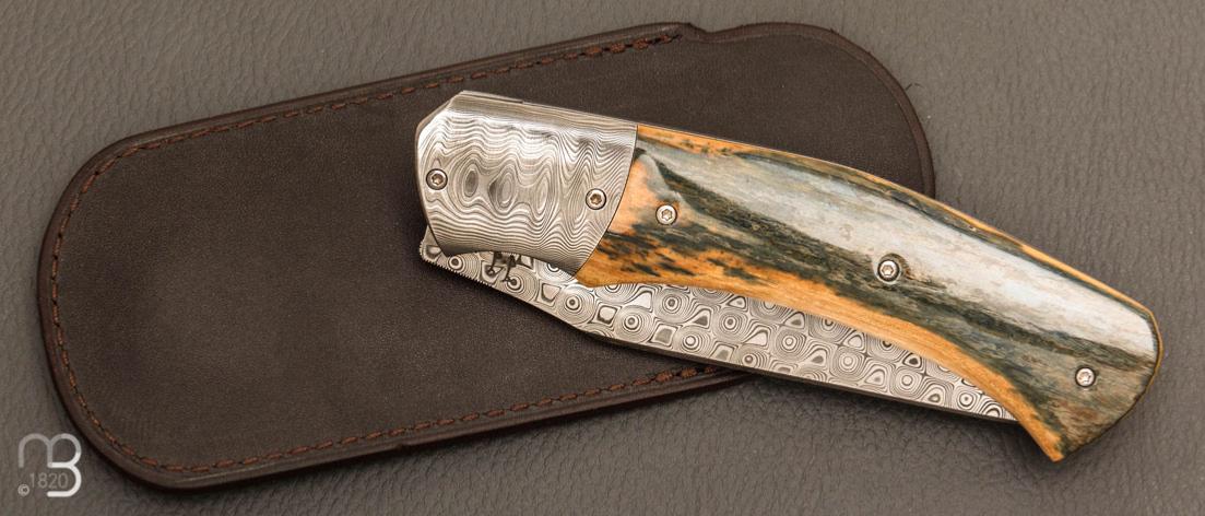 Couteau " pièce unique " par Joël Grandjean - Ivoire de mammouth et lame en damasteel