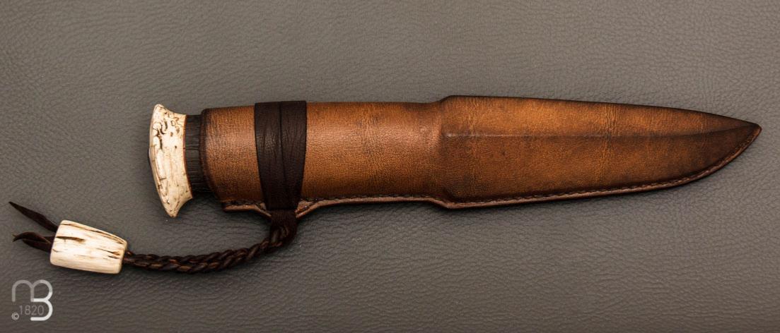 Couteau " puukko " custom Nordique  de Laurent Juhel - Boeuf musqué et chêne néolithique