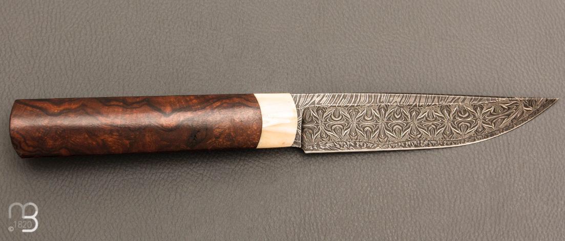 Couteau " Puukko " droit de José Viale - Bois de fer d'Arizona et damas Vlad Matveev