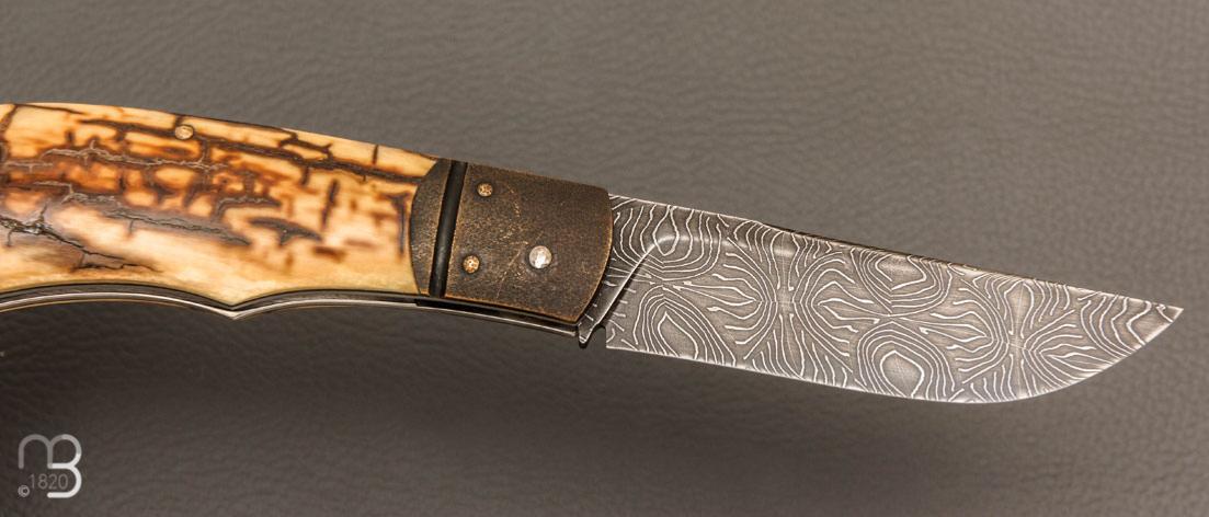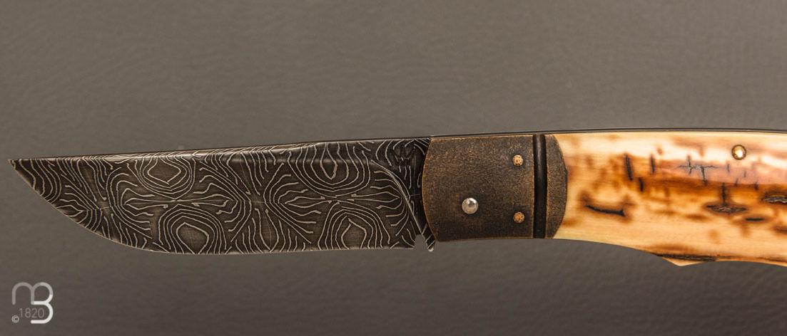 •   Couteau " Read " custom par Nicolas Weber - Ivoire de mammouth et lame damas