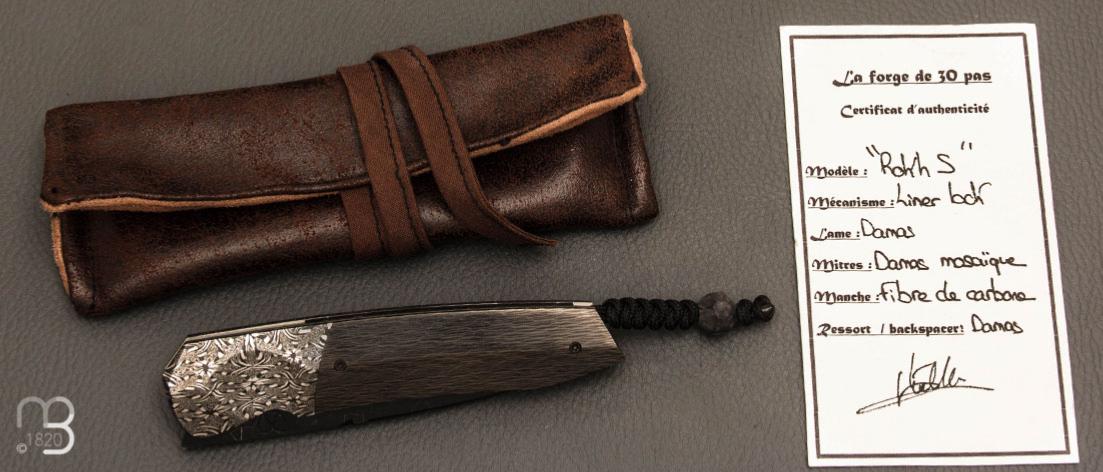 •    Couteau " Rokh S" par Florian Keller - Fibre de carbone et damas