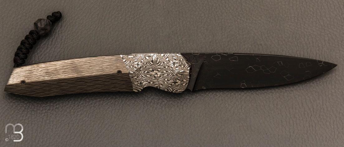 Couteau " Rokh S" par Florian Keller - Fibre de carbone et damas