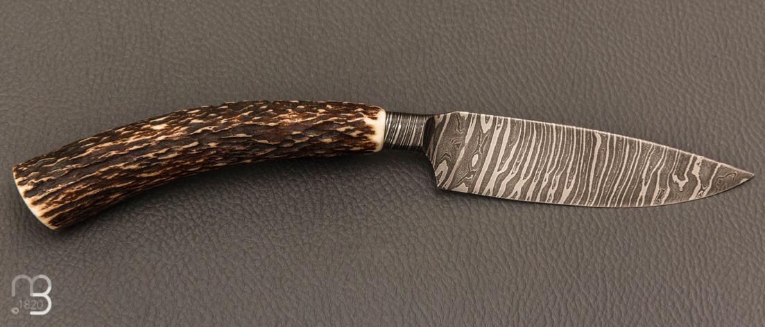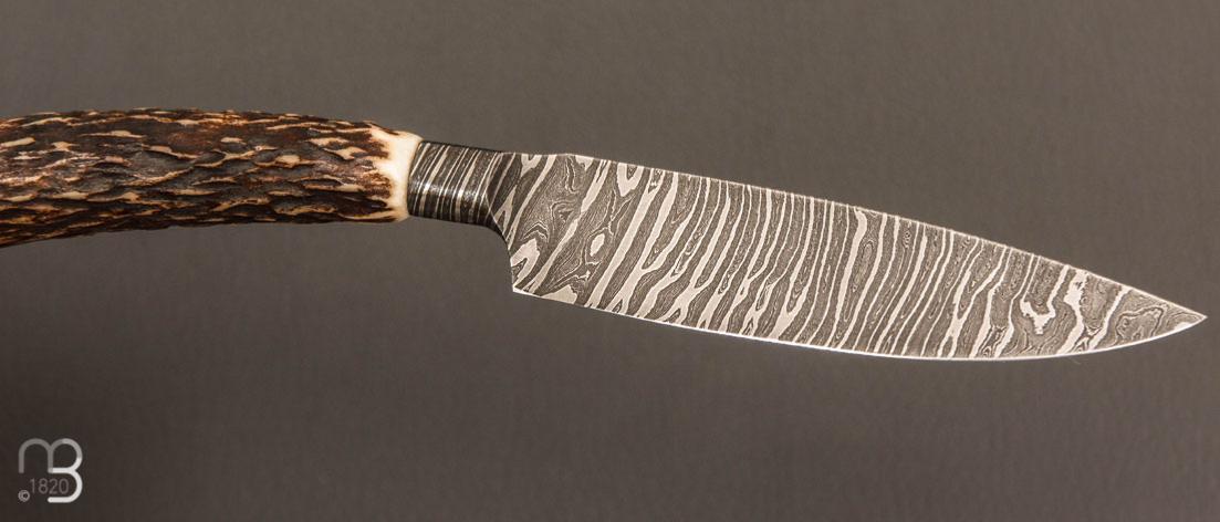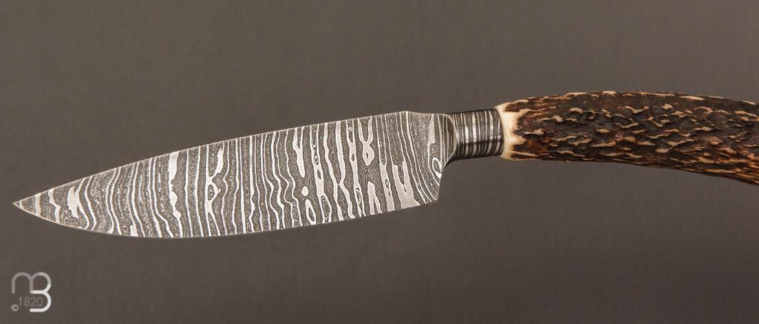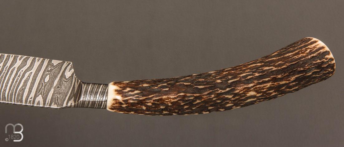 Couteau " Semi Intégral " custom de Anthony Brochier - Damas torsadé et bois de cerf