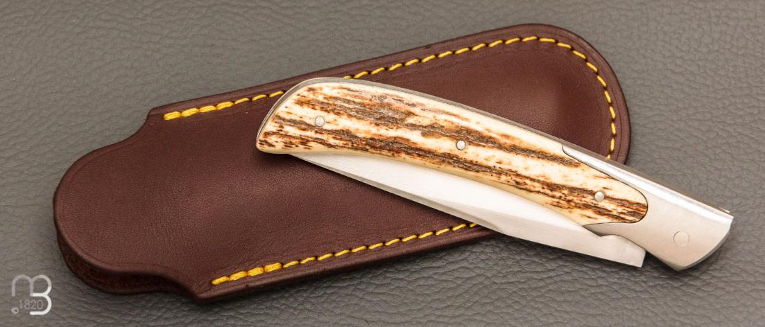 Un couteau pliant de Manu Benoist, avec un manche en croûte de mammouth