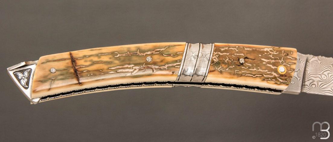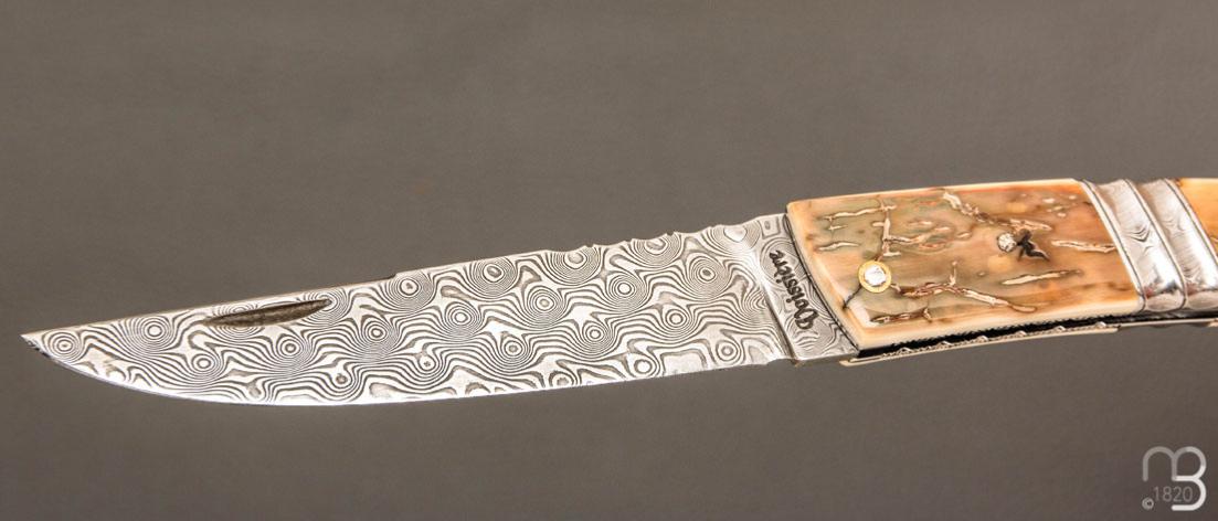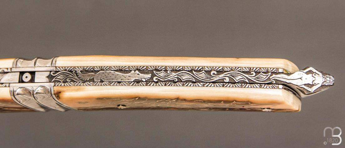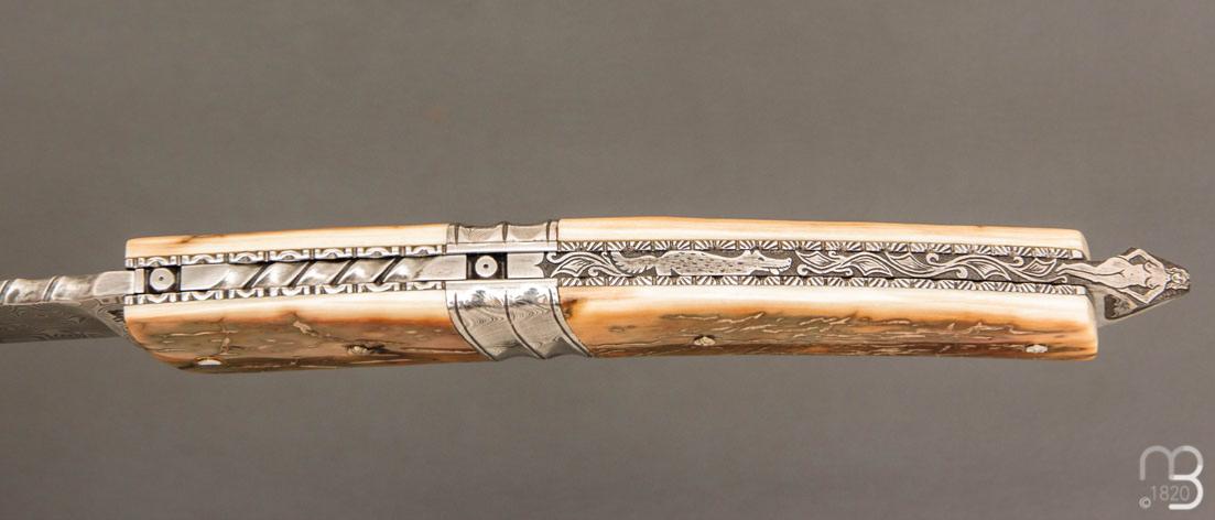 Couteau Thiers à pompe arrière sculpté par Philippe Voissière.