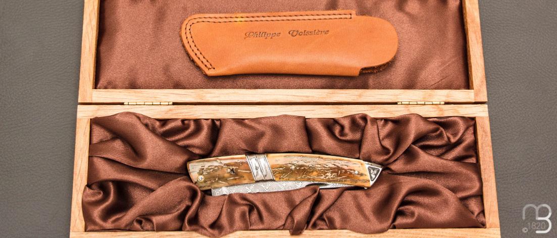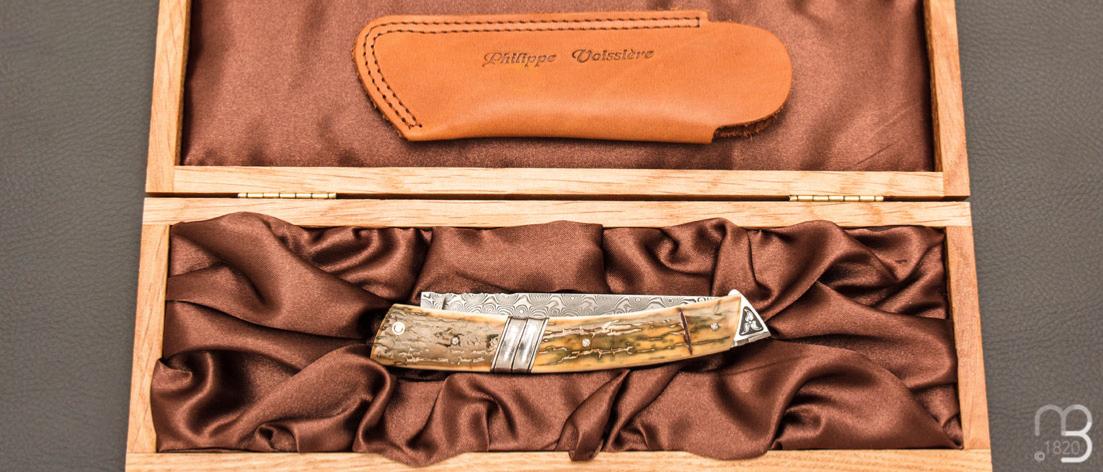 Couteau de Philippe Voissière est livré avec un étui en cuir et coffret bois.