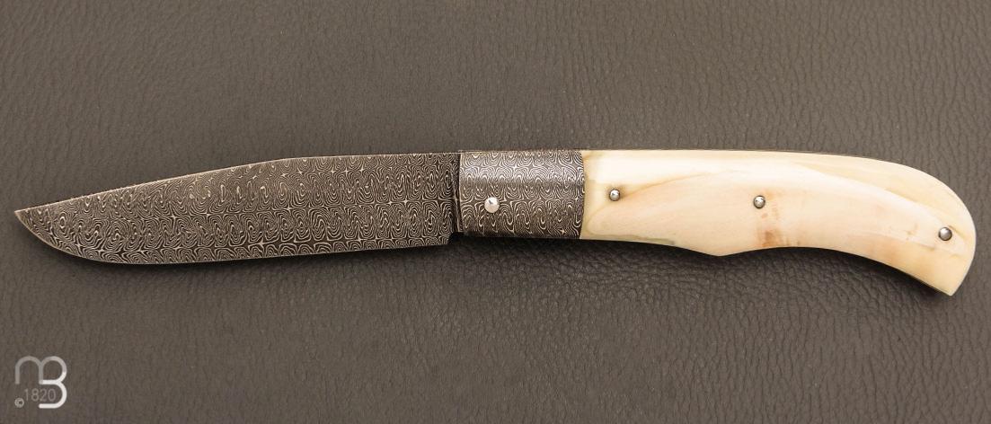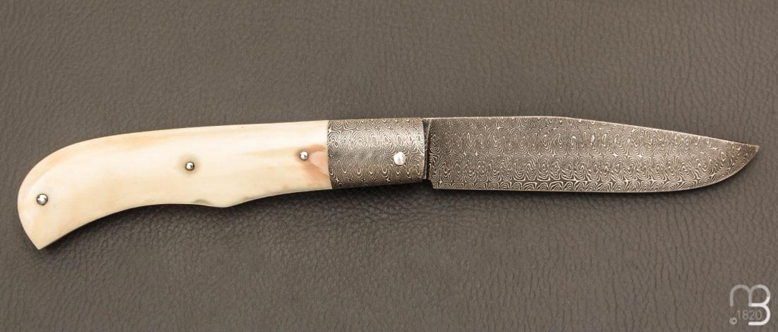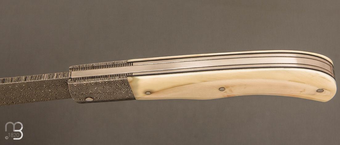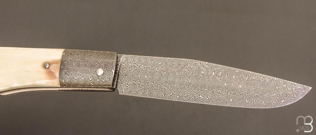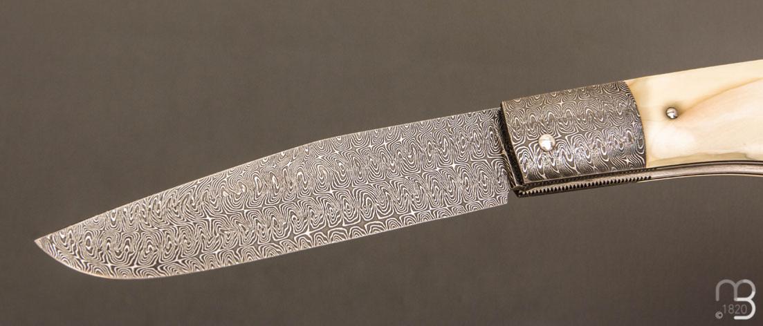 •  Couteau " Tony XL  " custom de Anthony Brochier - Damas multi-barreaux torsadé et ivoire de phacochère