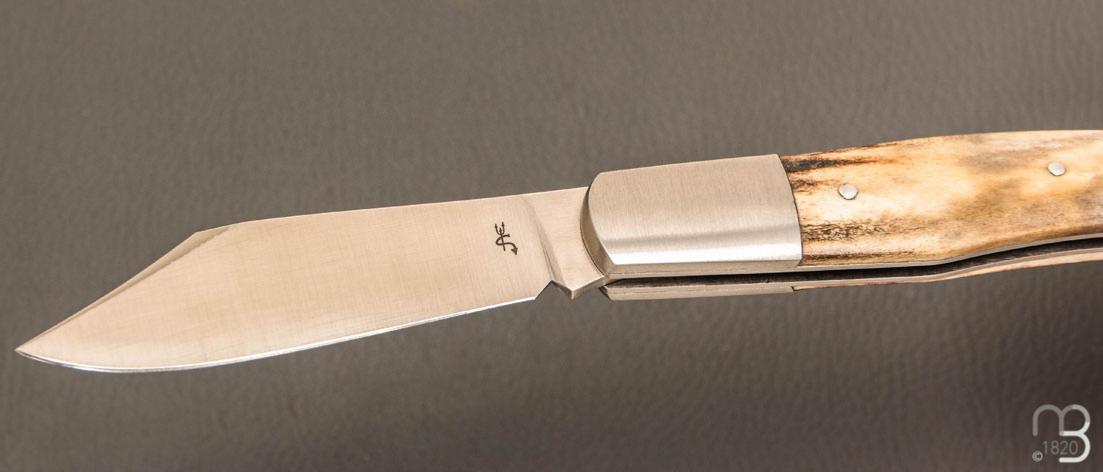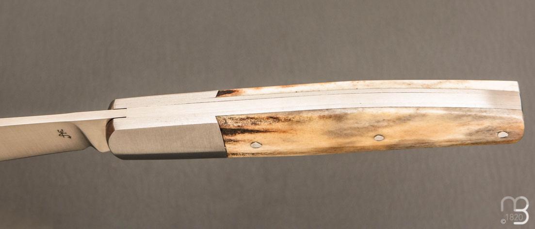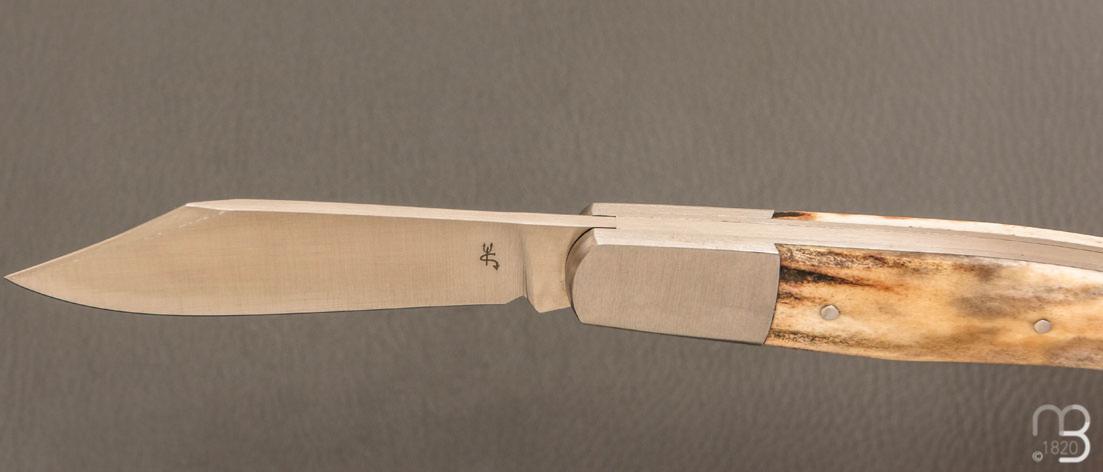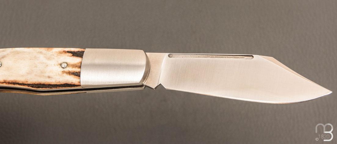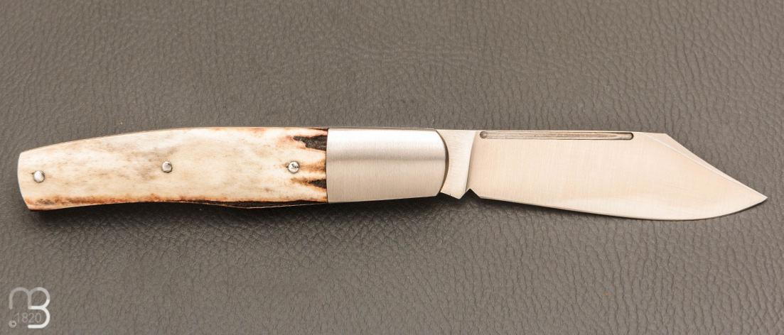 Couteau " Trappeur " custom à cran plat de Julien Baillon - Bois de cerf et RWL34