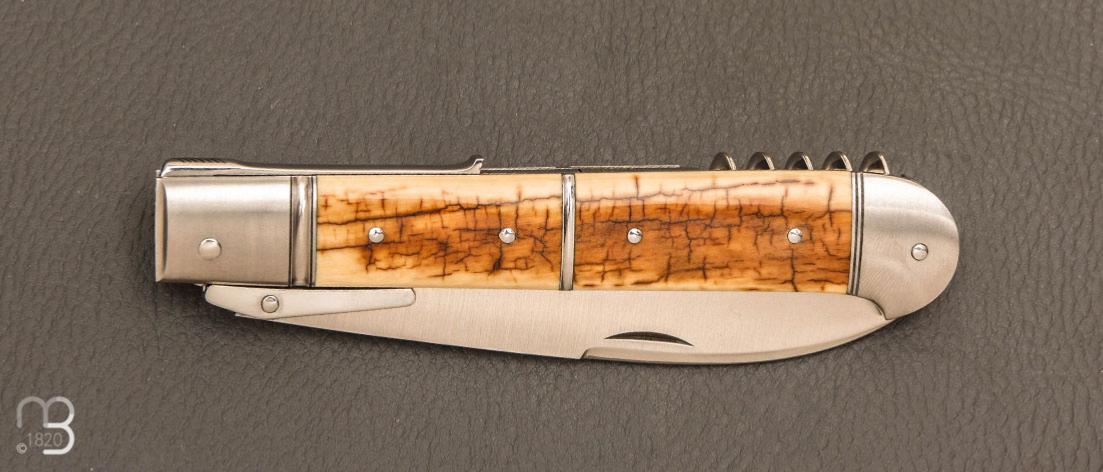 Manche composé de plaquettes en ivoire de mammouth, mitres et platines en acier inoxydable.