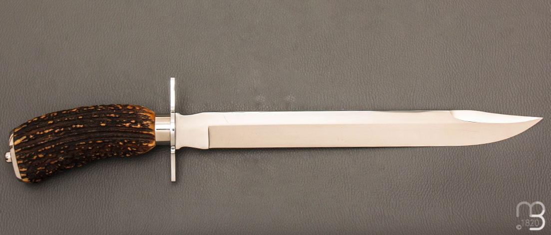 •     Dague de chasse 30 cm en bois de cerf par Jacques Mongin