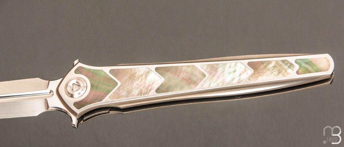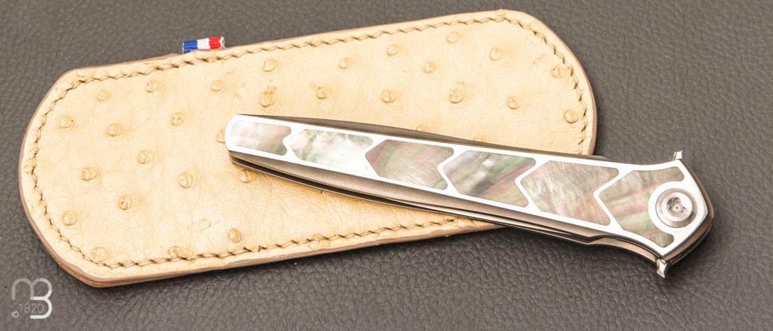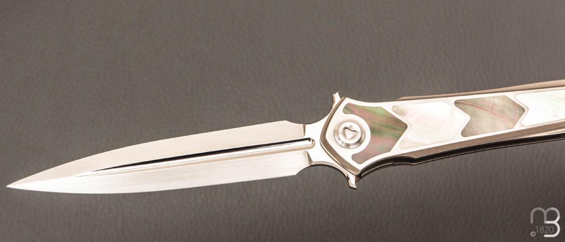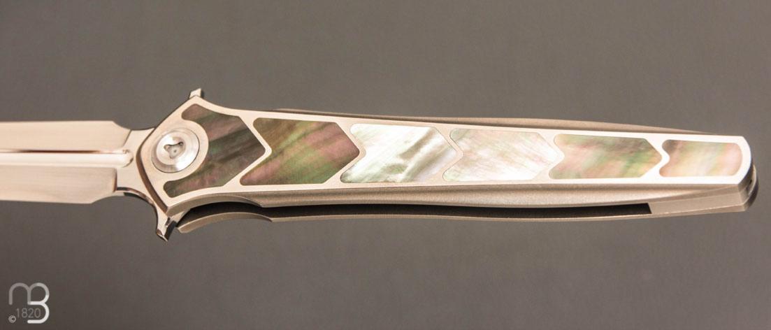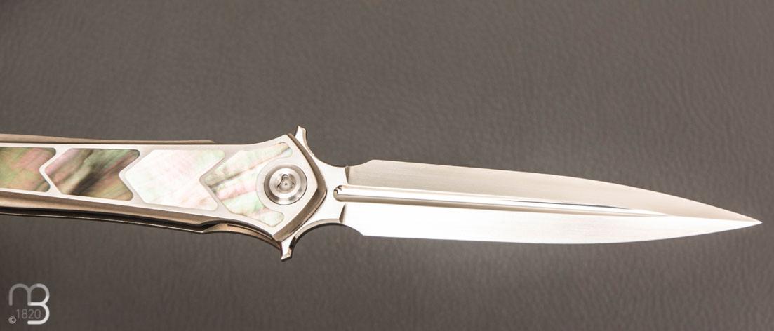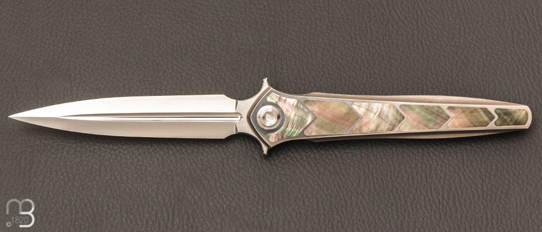 •   Dague pliante " Exocet " custom de Lionel Lalague - Nacre noire et lame en RWL34
