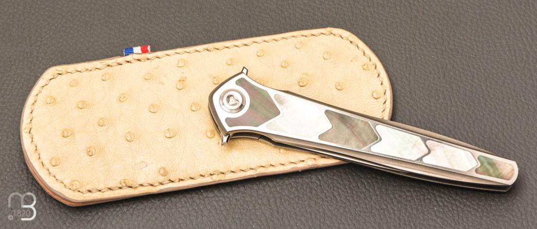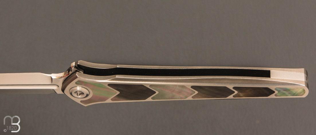 Dague pliante " Exocet " custom de Lionel Lalague - Nacre noire et lame en RWL34
