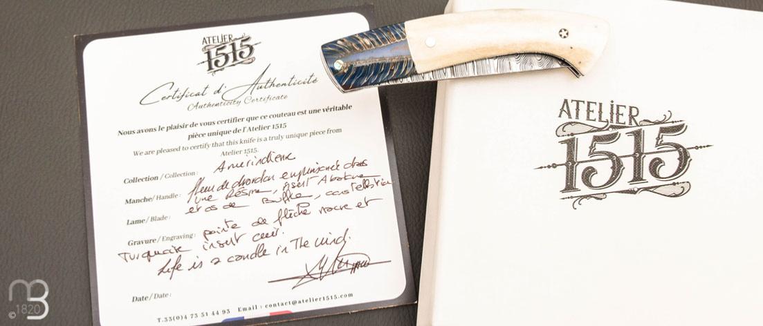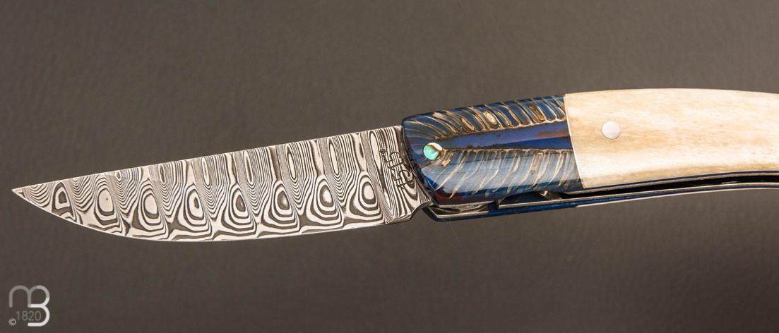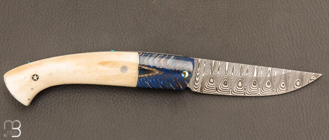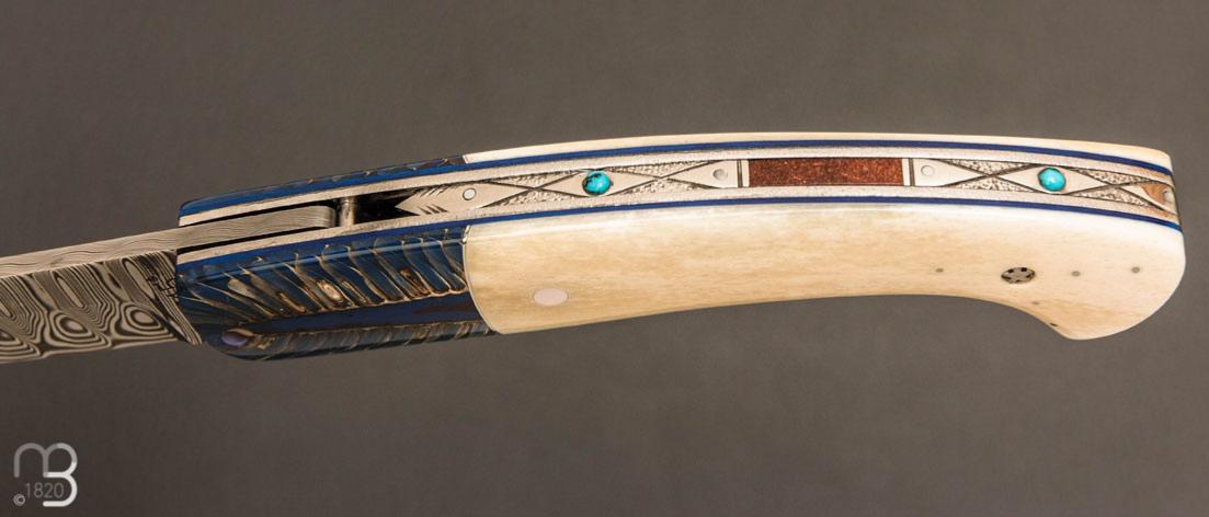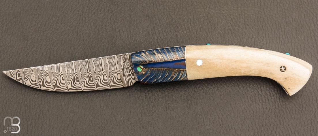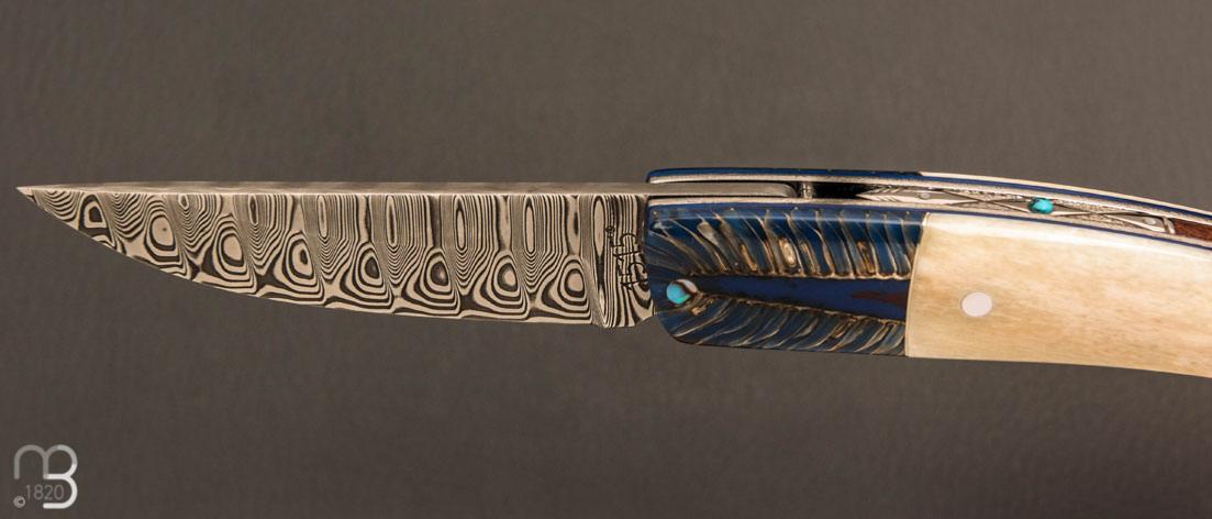 Couteau " 1515 collection Amérindien " par Manu Laplace - Os de buffle et damas
