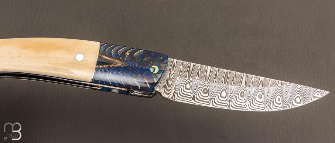 Couteau  " 1515 collection Amérindien  " par Manu Laplace - Os de buffle et damas
