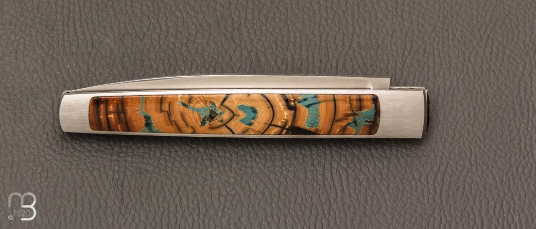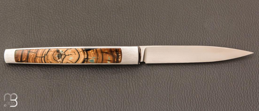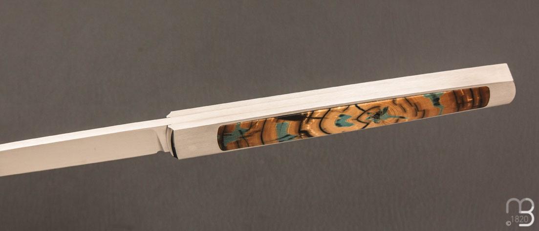 Manche en acier inoxydable avec inserts en ivoire de mammouth stabilisé