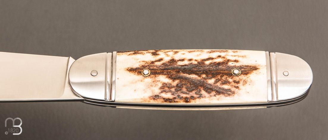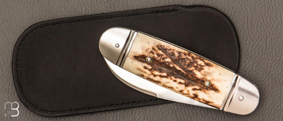 Couteau " Bouledogue " custom de Jérôme Bellon - Bois de cerf et lame en RWL34