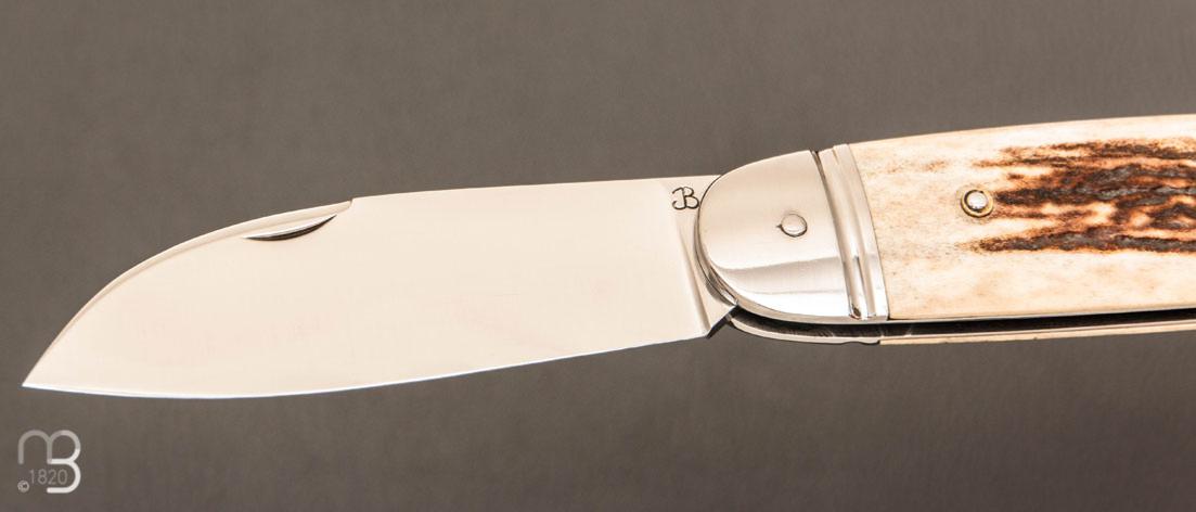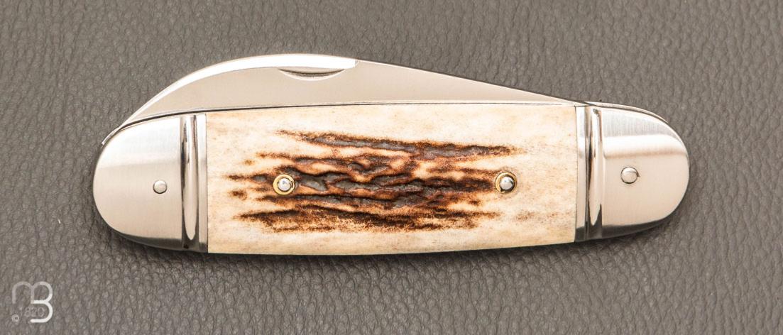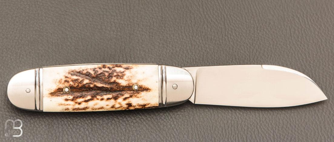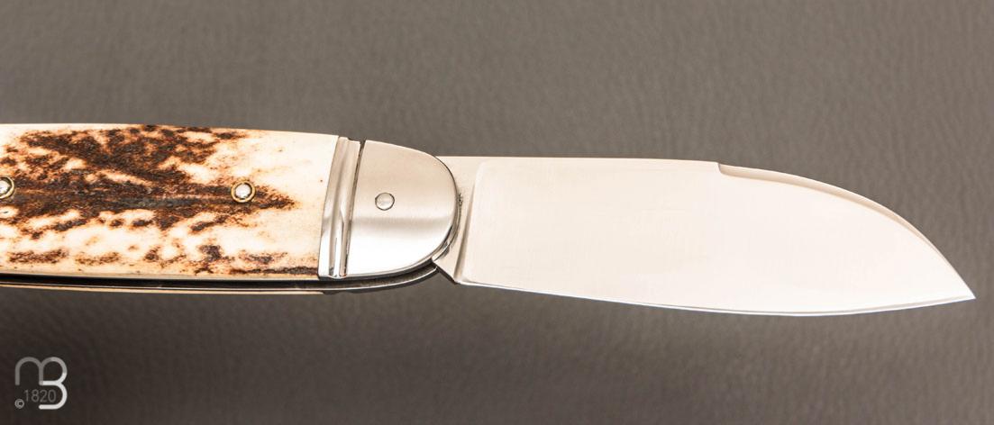 • Couteau " Bouledogue " custom de Jérôme Bellon - Bois de cerf et lame en RWL34