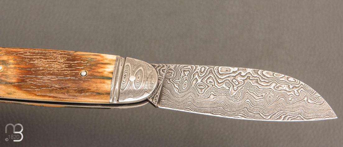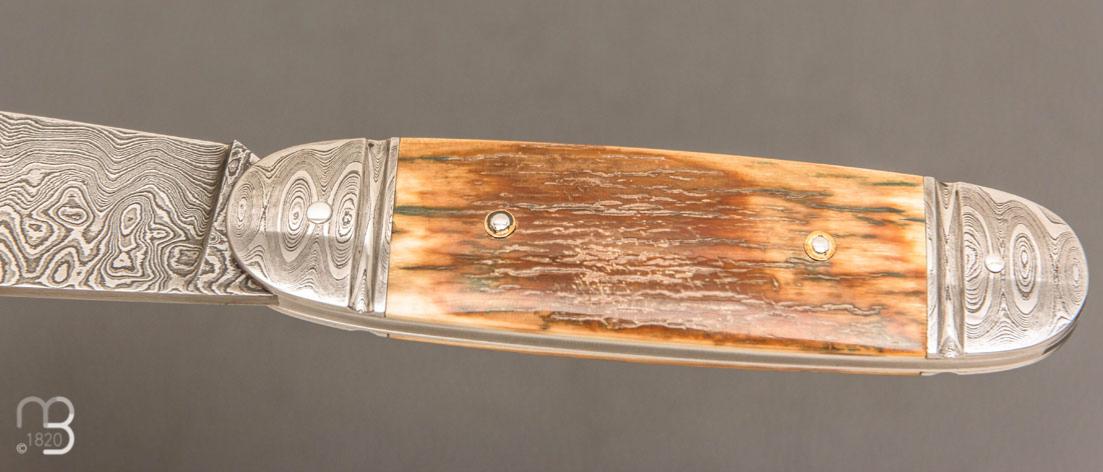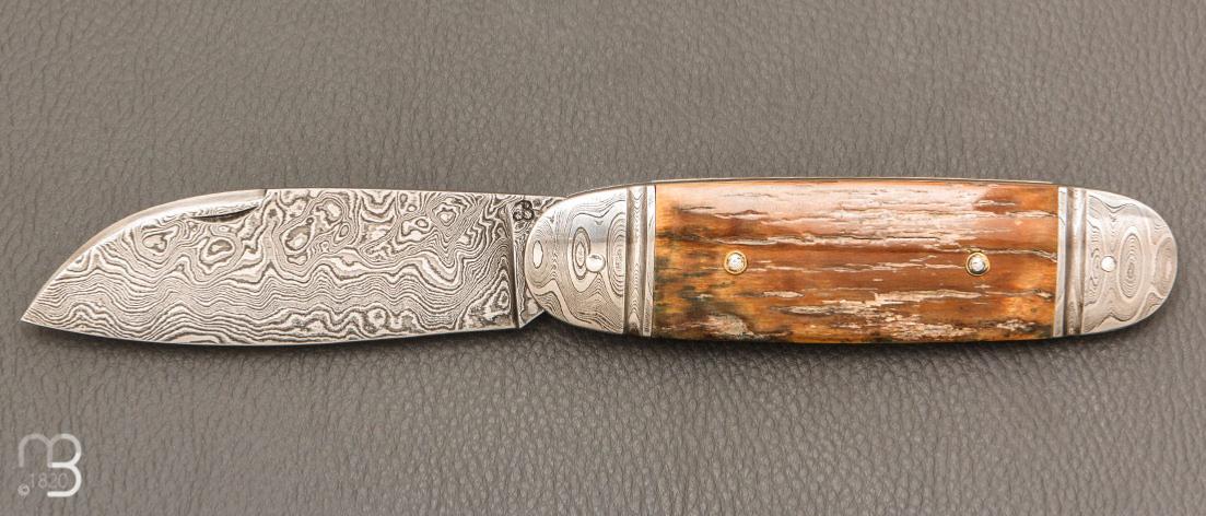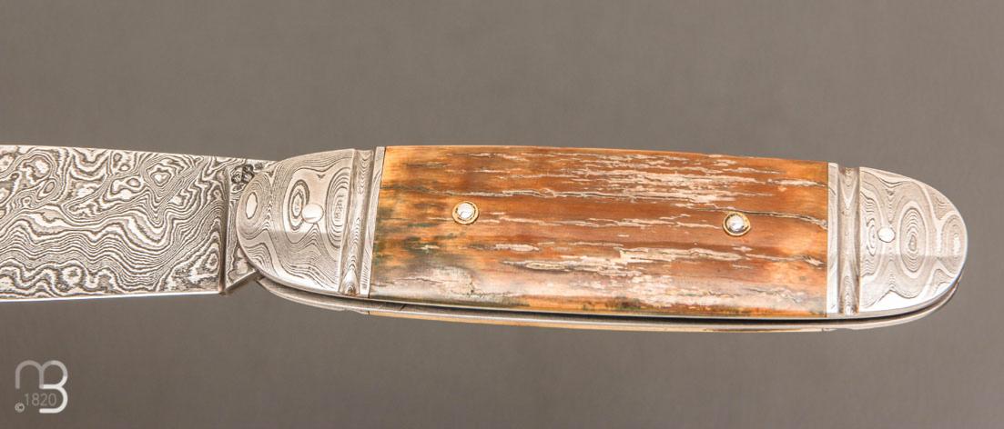 Couteau " Bouledogue " custom de Jérôme Bellon - Ivoire de mammouth et lame damas