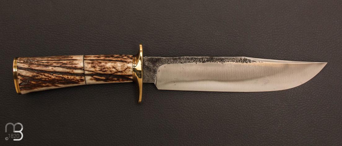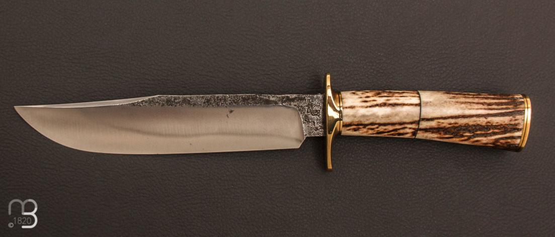 Couteau " Bowie " en bois de cerf et lame en 100C6 par Laurent Gaillard