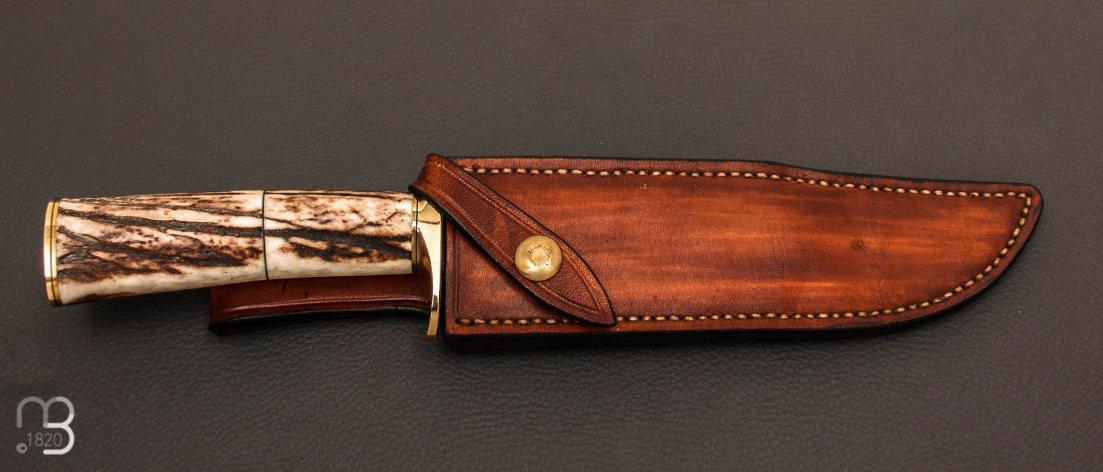 • Couteau " Bowie " en bois de cerf et lame en 100C6 par Laurent Gaillard