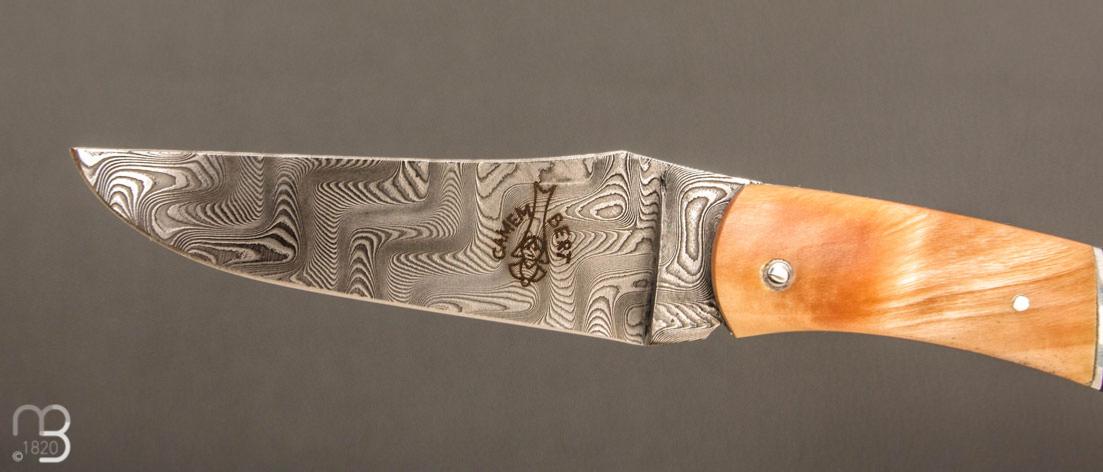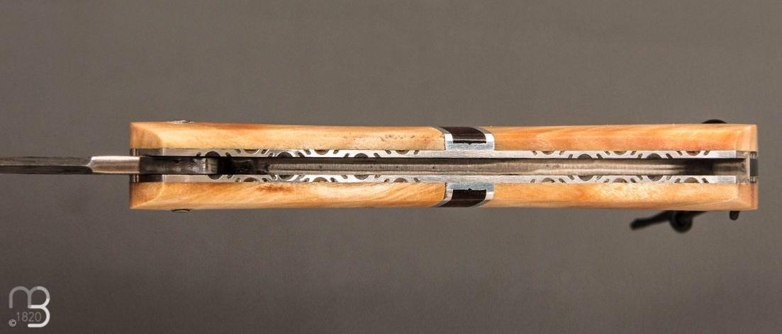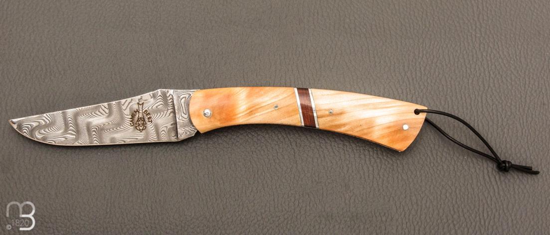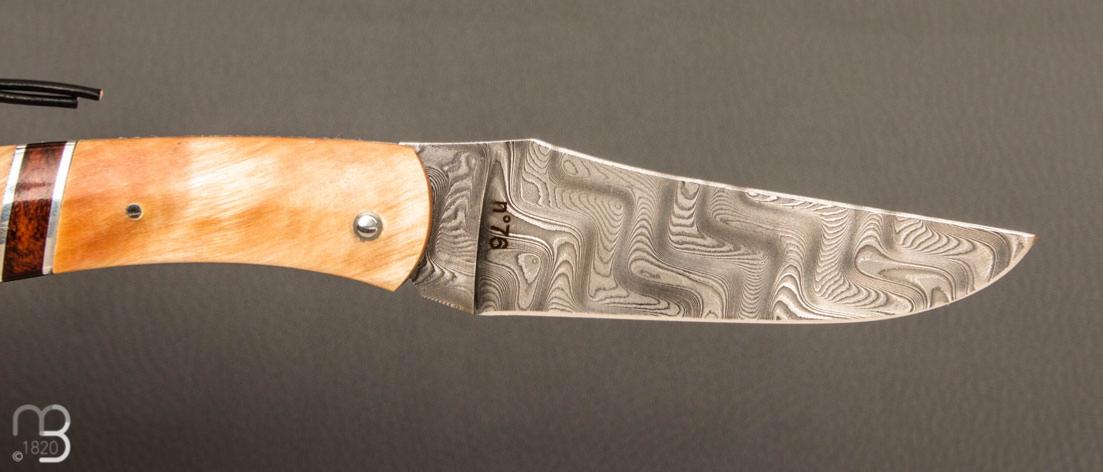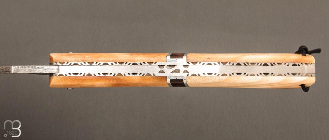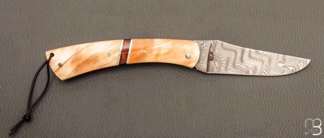Couteau " Camembert damas" régional pliant en fourche de peuplier stabilisée