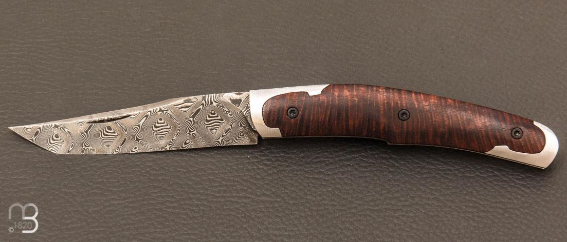 Couteau de poche "Céleste" plaquettes en gidgee ondé, fait main par Cyril Kalisz.