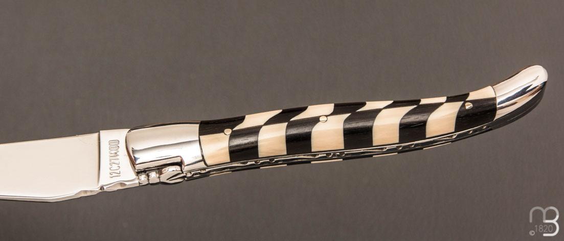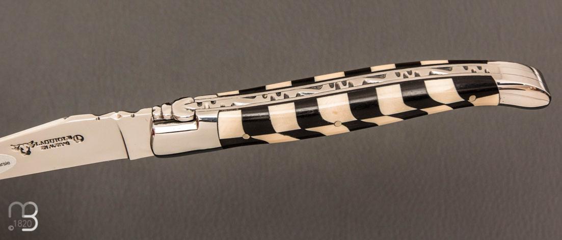 Couteau " Damier " par Laguiole en Aubrac - Ebène/ivoire de mammouth