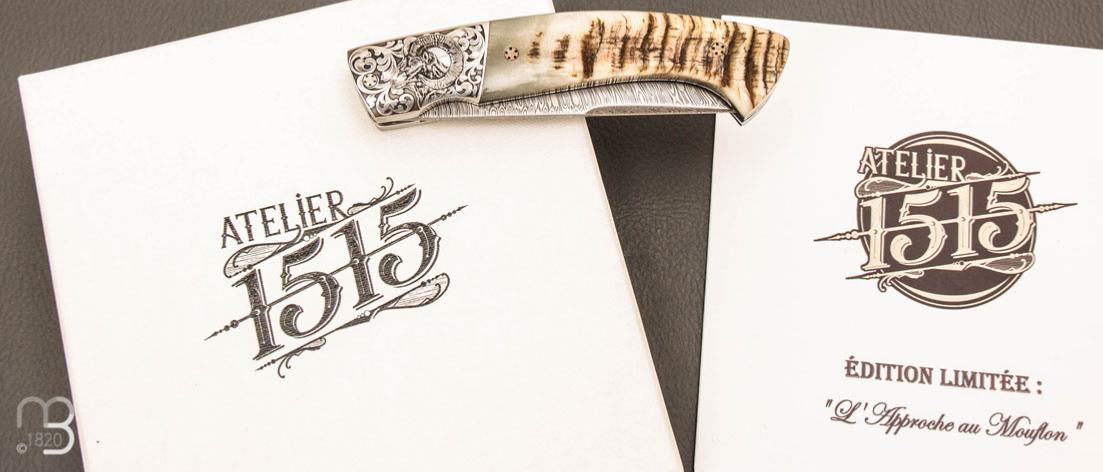 •    Couteau de poche 1515 édition limitée ''L'Approche au Mouflon'' lame Damas par Manu Laplace