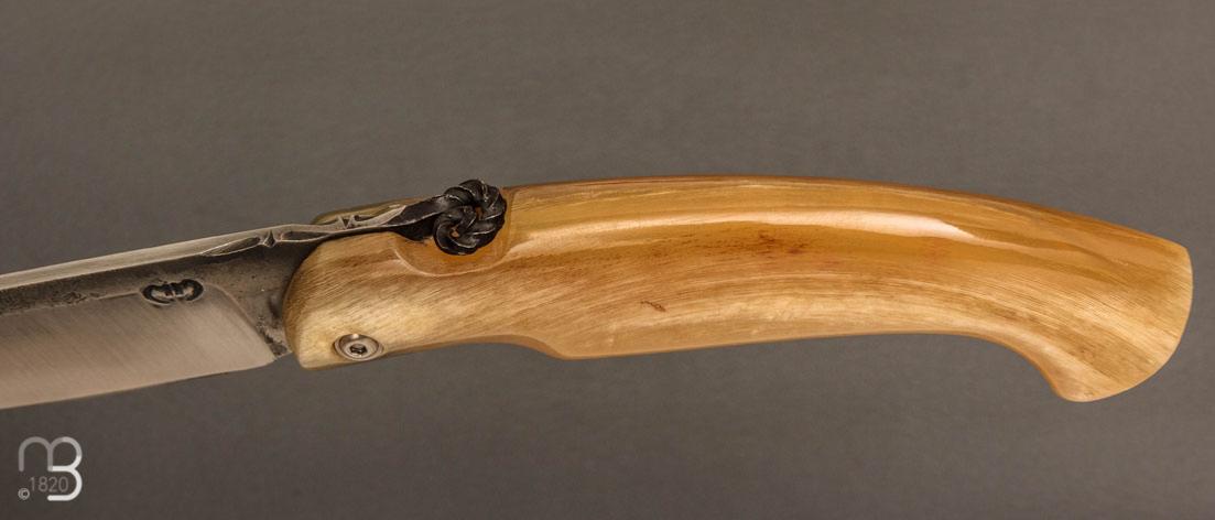 Couteau de poche Piémontais par Mickael Moing - Corne de bélier et 100c6