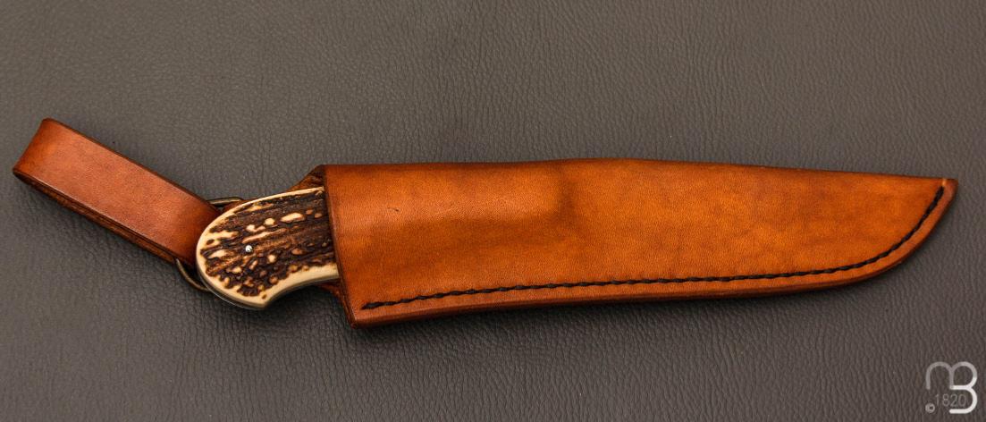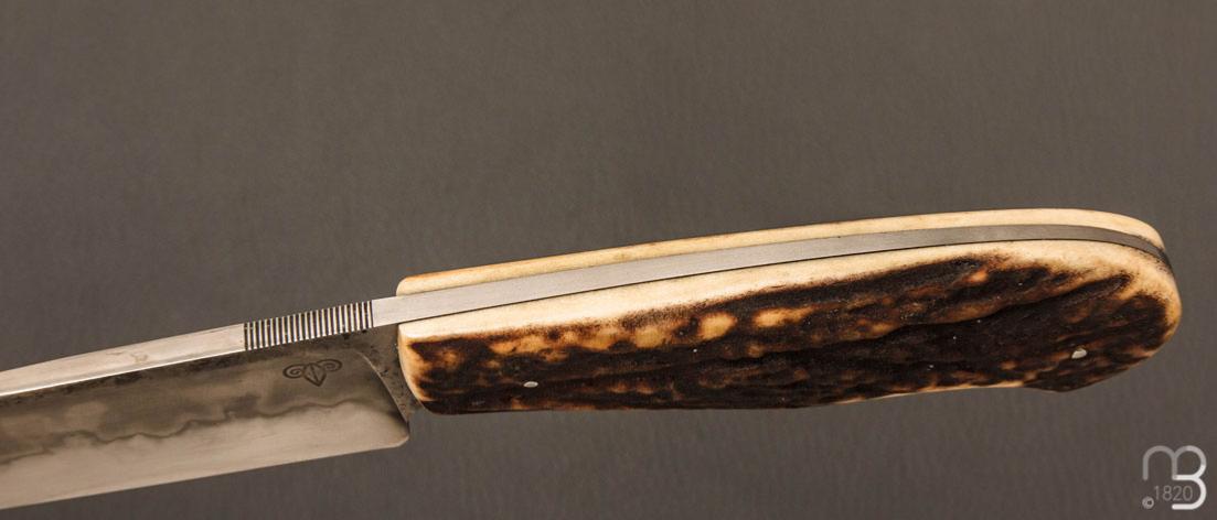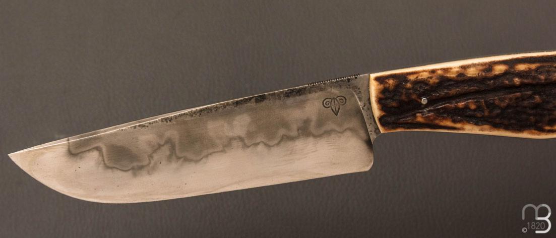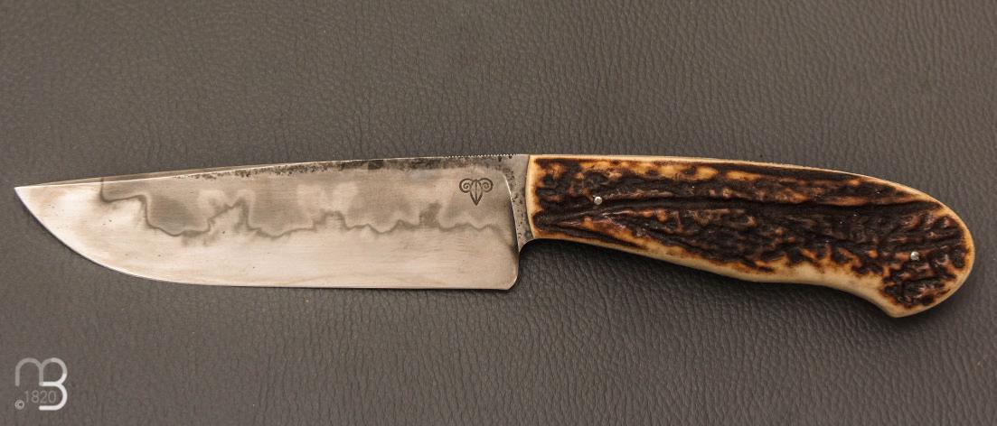 Couteau " droit custom " par Antoine Prévost - Bois de cerf et acier C105