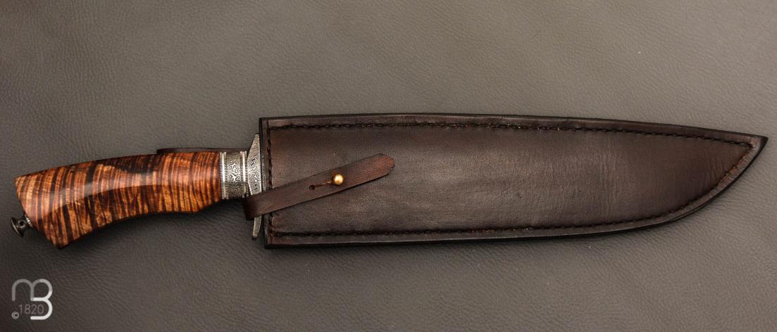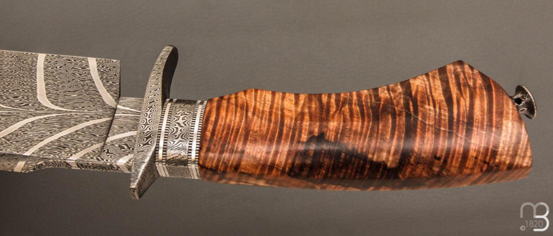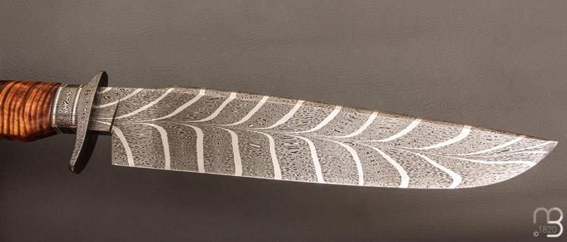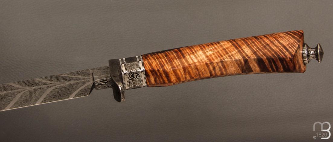 •  Couteau droit de collection  par Anthony Brochier - Tasmanian black wood et damas Torsadé plume