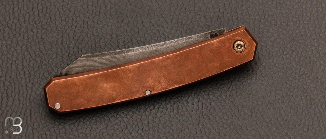 Couteau " Higo " custom de Marc Pallas "l'Athene Noctua" cuivre et VG10 damas
