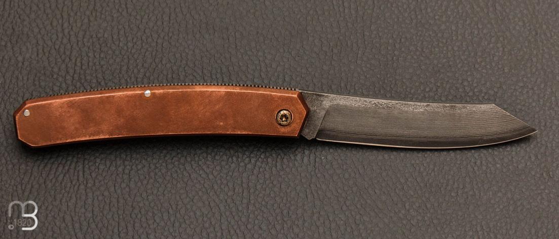 • Couteau " Higo " custom de Marc Pallas "l'Athene Noctua" cuivre et VG10 damas
