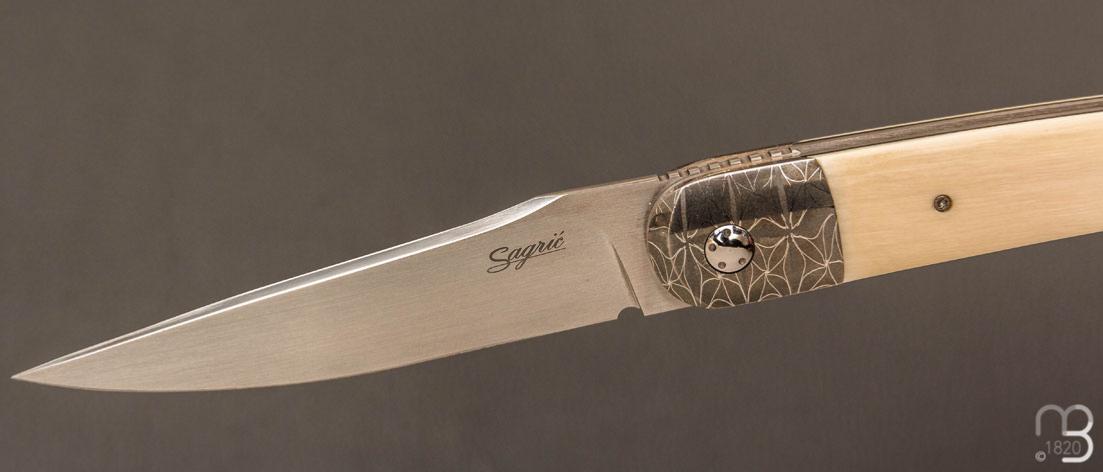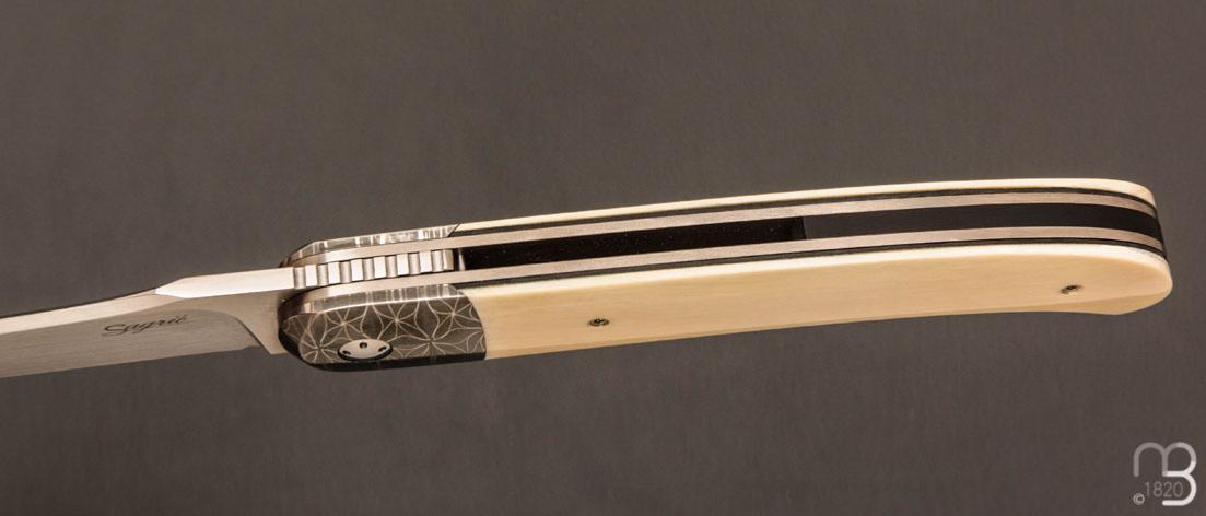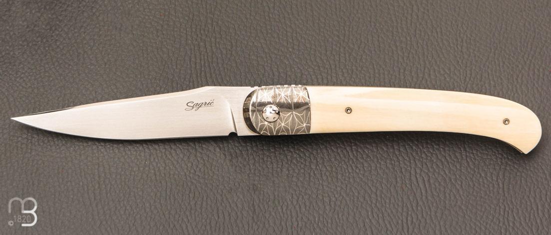 Couteau " Interprétation Laguiole " custom de Stéphane Sagric - Ivoire de Mammouth et RWL-34