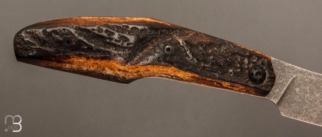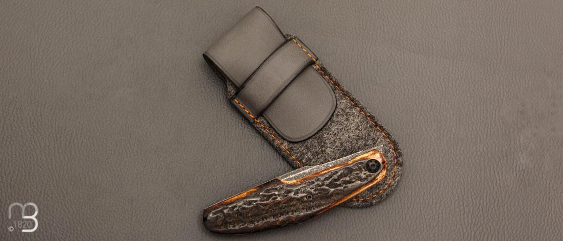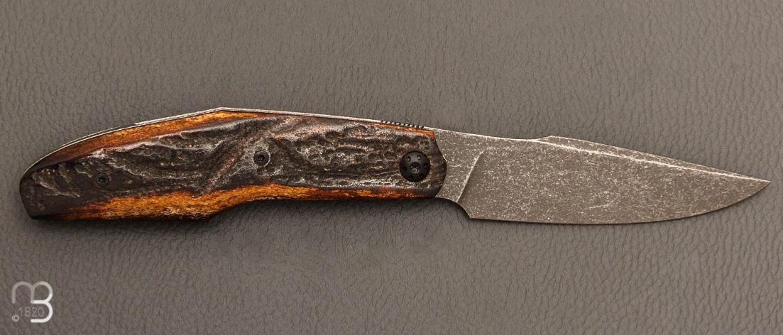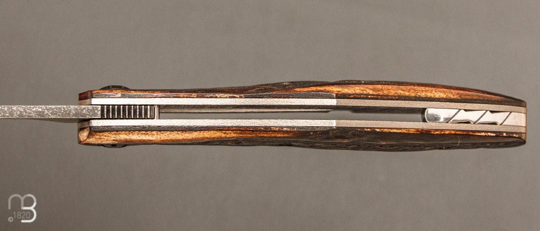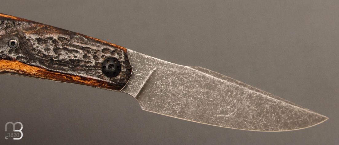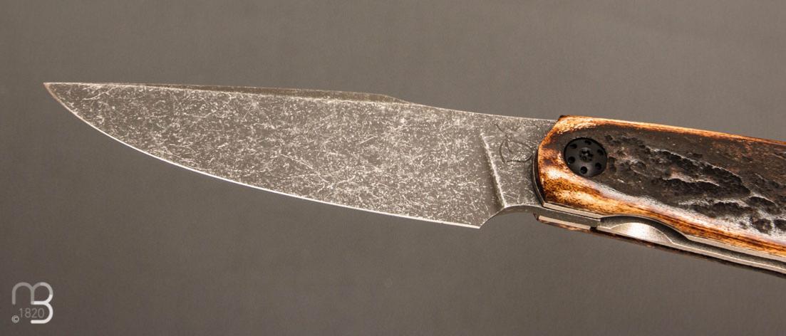 Couteau " Kalisse SV " custom pliant de Michel Grini - Bois de cerf et lame en 14c28n