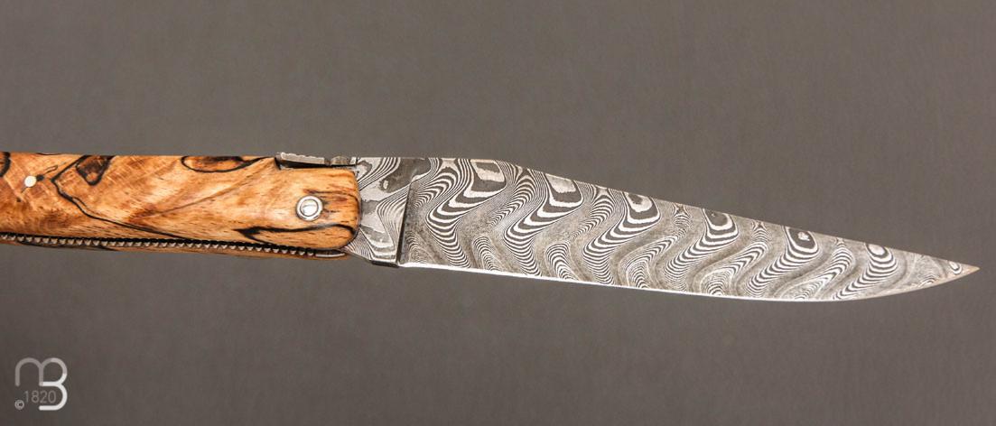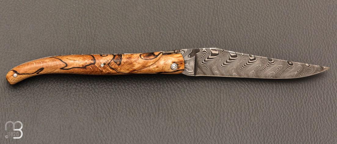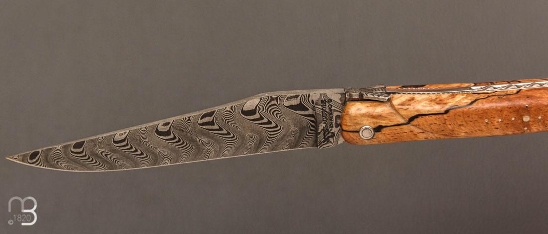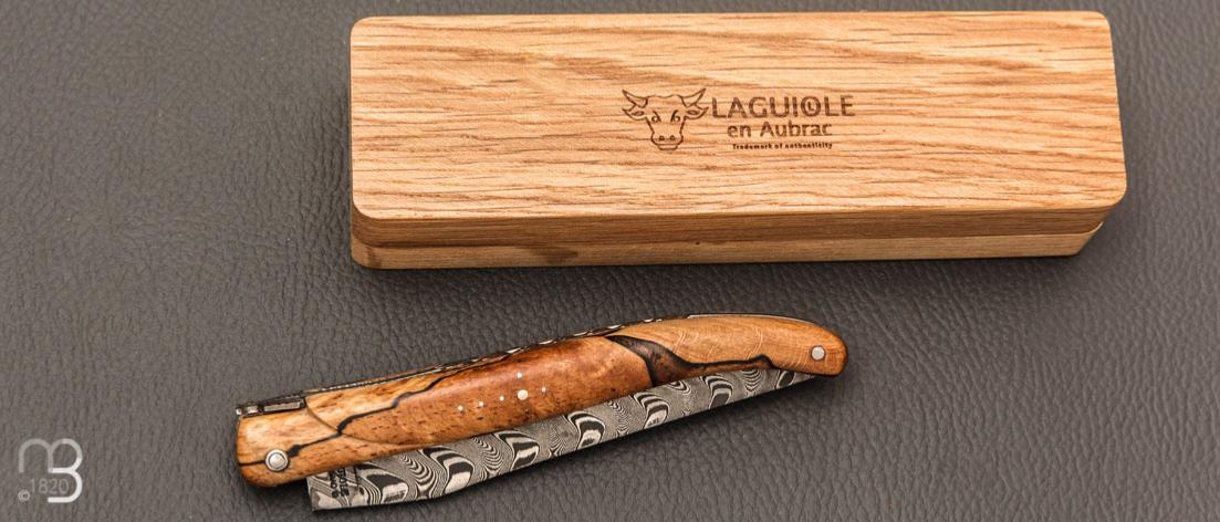 Couteau Laguiole en Aubrac "Perlé" 12 cm lame damas - manche bois d'Aubrac