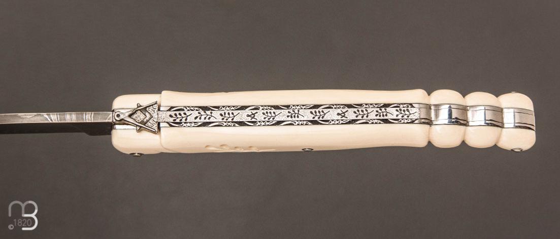Couteau " Laguiole Franc-Maçon " par Mike & Steph - Mammouth et damas de Philippe Ricard