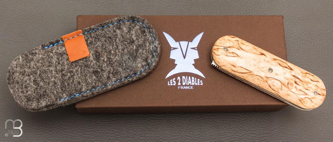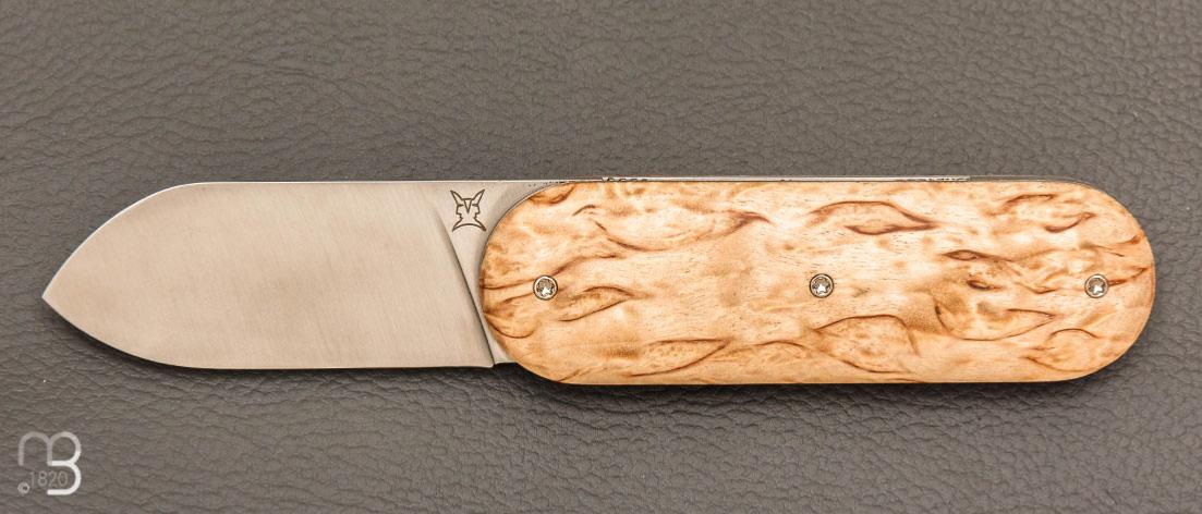 Couteau " Le Cerbère® " pliant par l'Atelier Les 2 Diables - Bouleau madré et 14c28N
