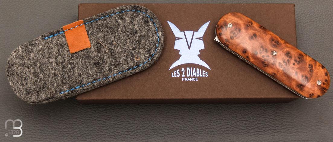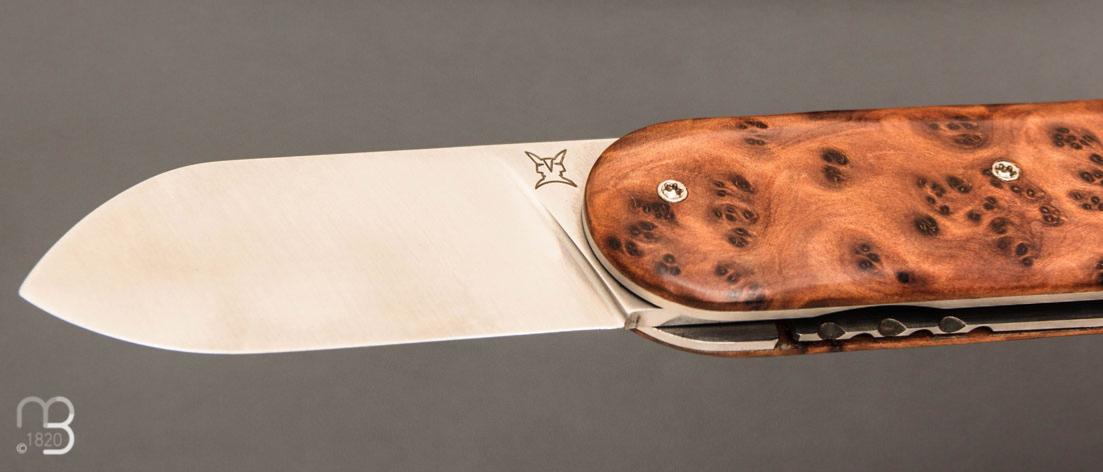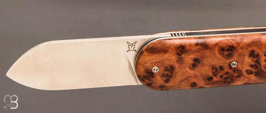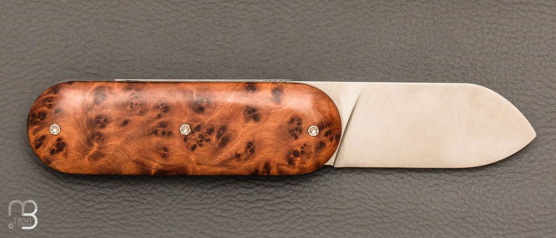 Couteau " Le Cerbère® " pliant par l'Atelier Les 2 Diables - Loupe de Thuya et 14c28N
