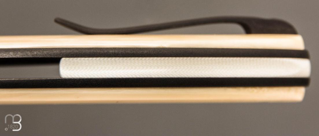 Manche composé de plaquettes en ivoire de phacochère, entretoise en G10