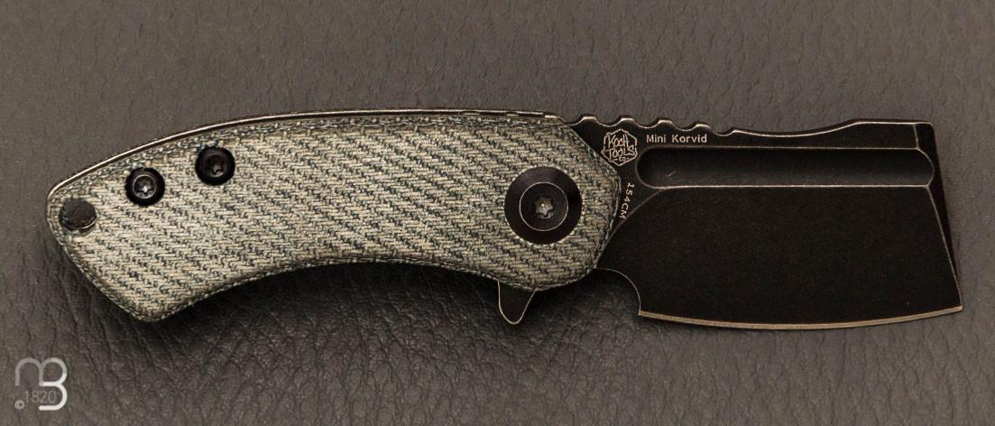 •  Couteau " Mini Korvid T3030A9 " design de Justin Koch par Kansept - G10 denim et lame en 154CM