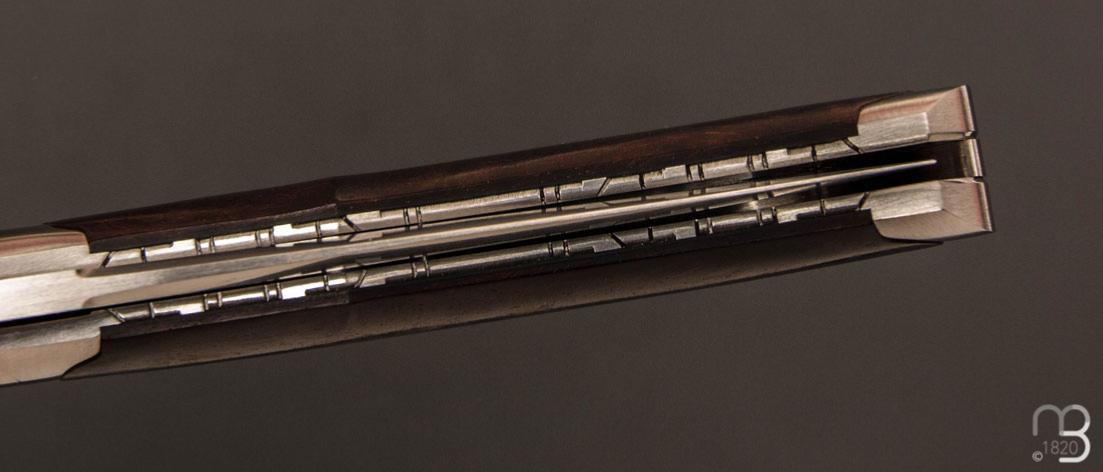 Toute la visserie est cachée sur ce couteau. Ce qui en plus du travail que cela demande donne une élégance remarquable.