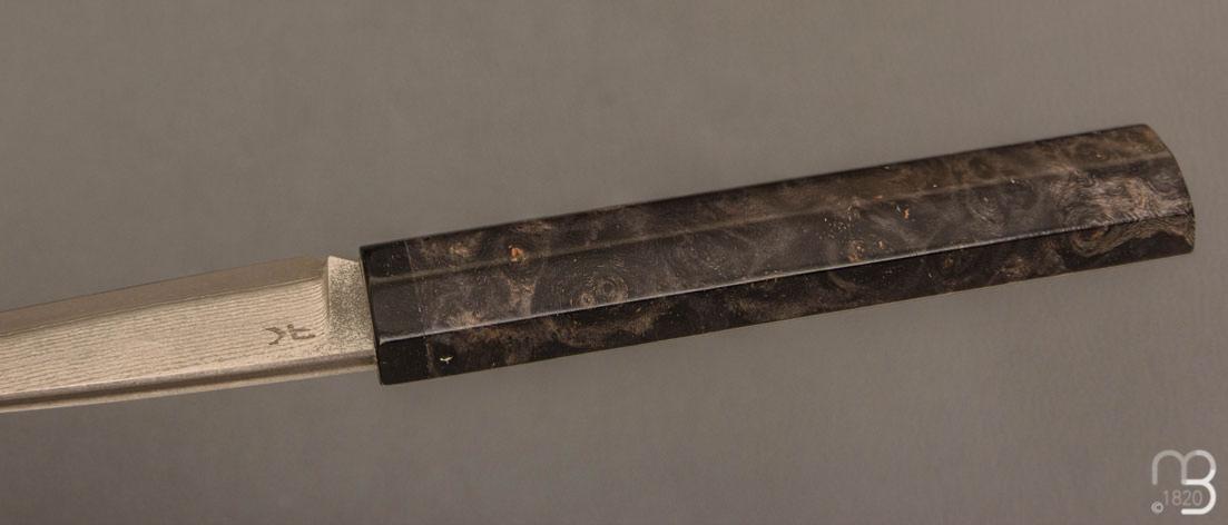 Couteau " Office type Japonais " par Nicolas Kowal - Loupe d'amboine et lame Suminagashi VG10