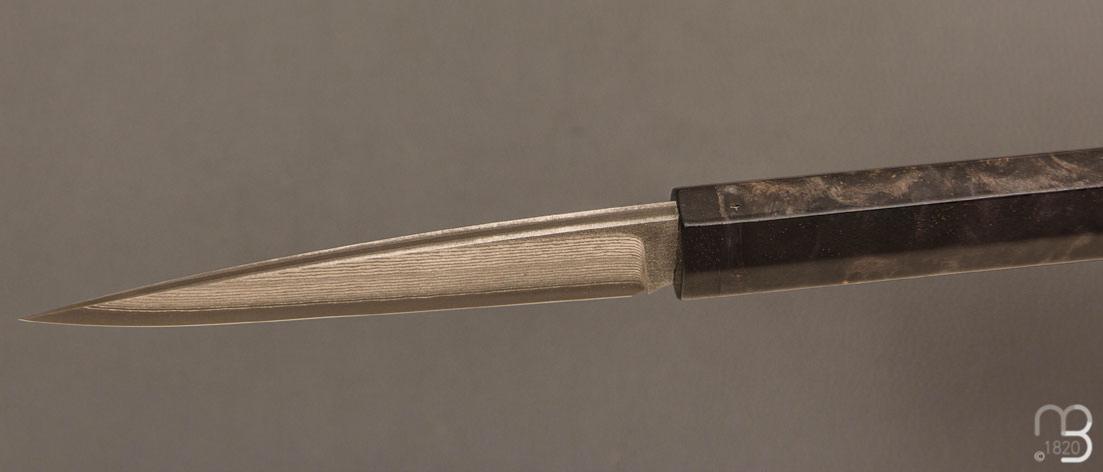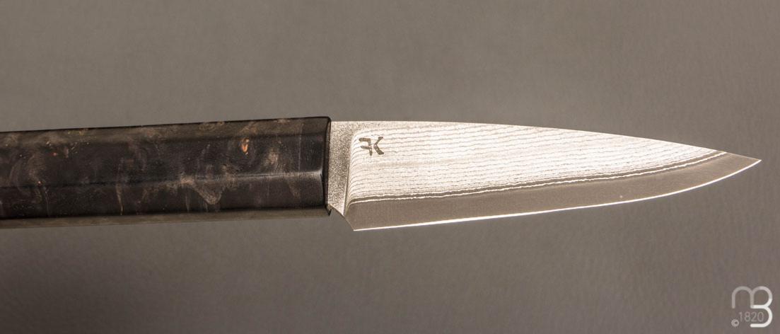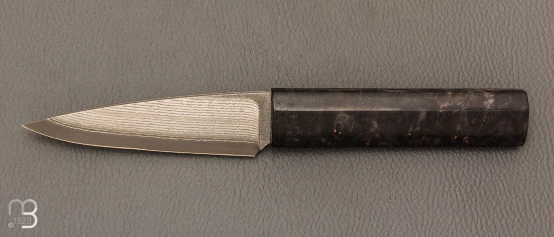 • Couteau " Office type Japonais " par Nicolas Kowal - Loupe d'amboine et lame Suminagashi VG10