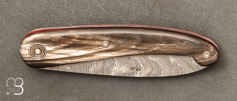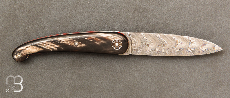Manche en corne de buffle, intercalaires en micarta.