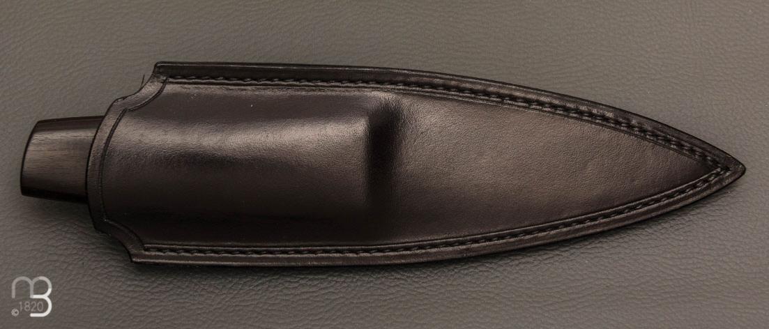 Ce couteau est livré avec un étui en cuir noir réalisé sur mesure pour ce couteau.