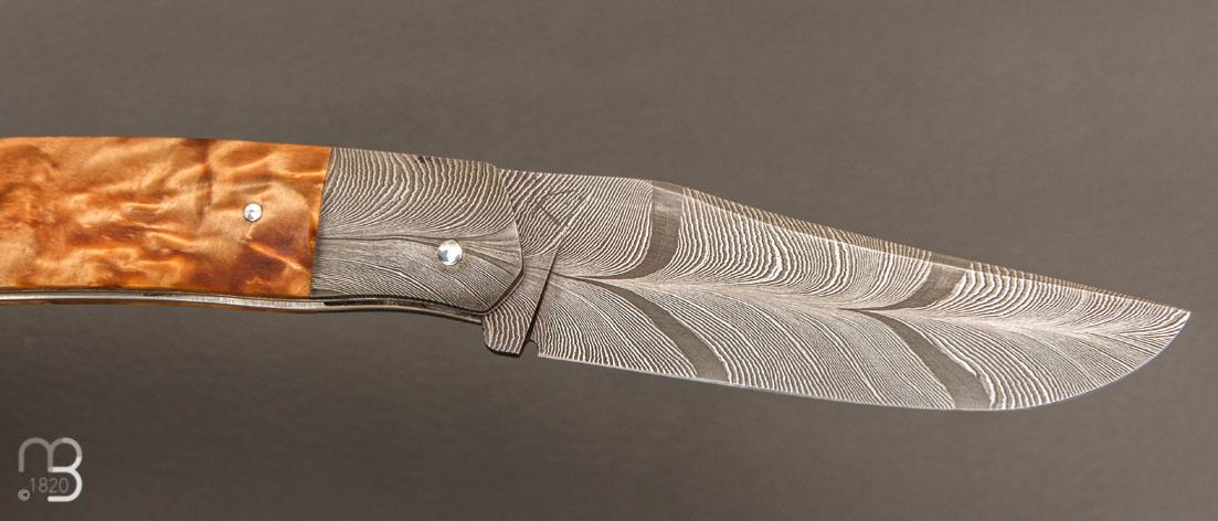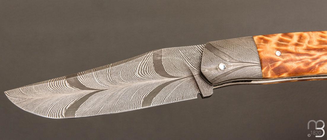 • Couteau " Slipjoint " custom par Karim Valentin - Fourche de peuplier stabilisé et damas plume