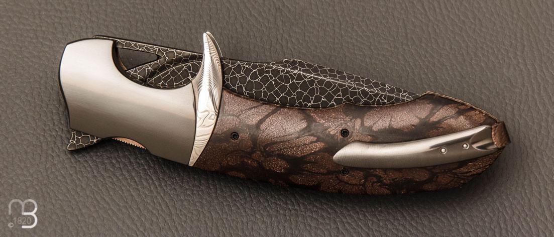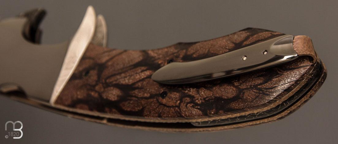 Couteau " Sub Hilt flipper folder " de Javier VOGT - Damas et Liana wood - Sam Lurquin Design