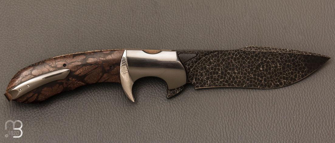 • Couteau " Sub Hilt flipper folder " de Javier VOGT - Damas et Liana wood - Sam Lurquin Design